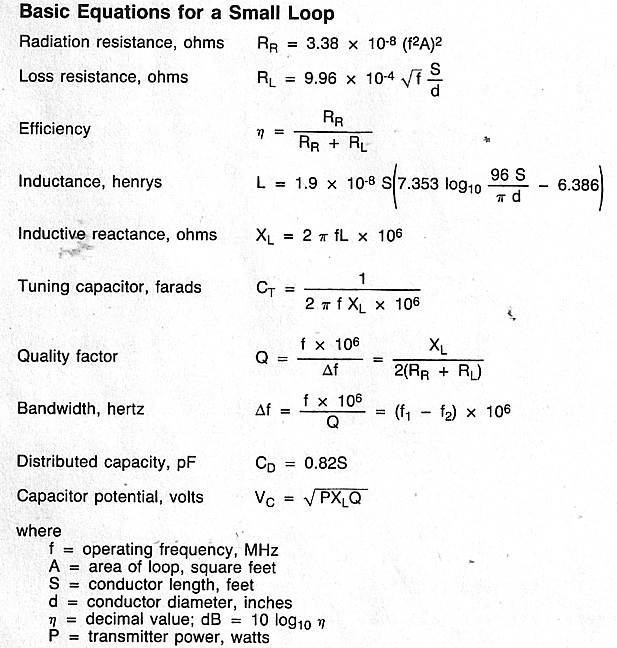 The small transmitting loop has been around for a long time but it appears to have been improved for amateur radio by Ted Hart W5QJR who developed a set of equations to calculate the various loop constants and set down parameters for a new design (refer QST, June 1986). The 15th edition of the ARRL Antenna Handbook also has some excellent material on both transmitting and receiving loop aerials. A section on small transmitting loops, written by Ted Hart, includes his design formulae (see appendix) plus a complete set of worked-out data for practical loops.