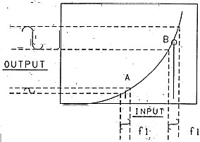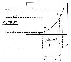 if two signals of different frequency are fed through a linear device, they will appear at the device output as the same two frequencies. To mix two signals we require a curved or non-linear characteristic such as shown in Figure 1. The diagram shows a low-level signal f1 with the operating point set for two positions, A and B. Observe that the output level of fi is much higher when the operating point is set to B than when set to A. Now, examine Figure 2. In this diagram, we sweep the operating point between point A and B with a second high level signal fo modulating the amplitude of fi. The word "modulating" has been deliberately used here to demonstrate that if fi were a carrier frequency and fo an audio frequency, we would call it amplitude modulation. The point being made is that amplitude modulation is the same process as mixing, the sum and difference components being the sideband components referred to in modulation.