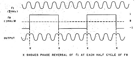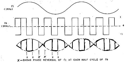 It is significant that the square wave has only two states, one and minus one, so that to multiply with fi it is only necessary to multiply fi alternately by one and minus one, that is, reverse the phase of fi at each fo polarity transition.