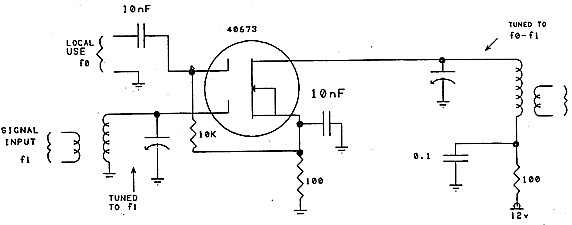 A typical continuous non-linear mode mixer is the dual gate MosFET circuit as illustrated in Figure 9. The MosFET has a square law characteristic which is particularly good for mixing purposes. Because of its high gate impedance, it requires little power to drive it and the separate gates provide good isolation between the two signals being mixed.
