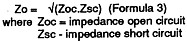 Characteristic impedance of a finite length of line at a given frequency can be derived by taking two impedance measurements, one with the end open circuit and the other with the end short circuited. From these, Zo is calculated as follows: