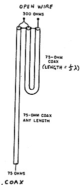 75 ohm coax to 300 ohm open wire (reproduced from the ARRL Antenna Handbook). |
