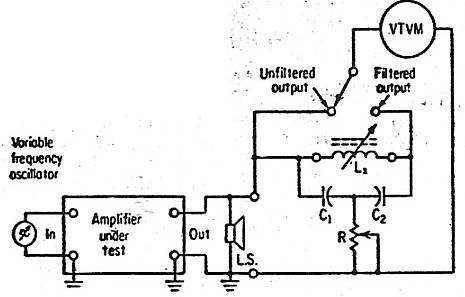 showing Bridged T Rejection Filter composed of L2, C1, C2, & R |