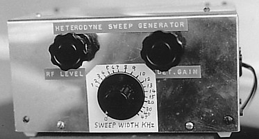 In the writer's unit, maximum sweep width possible was 47kHz and the sweep width control was calibrated from this figure down in steps to lkHz. In the heterodyne sweep generator, the frequency modulated oscillator has a fixed centre frequency and hence the sweep calibration holds good for whatever frequency is taken out of the mixed stage.