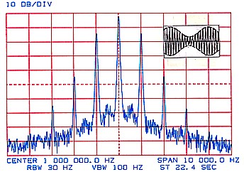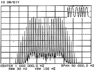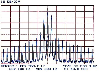 - Modulating Frequency 1000 Hz. | - Modulating Frequency 1000 Hz. - Modulation Index 8.650 and showing Third Carrier Null. |