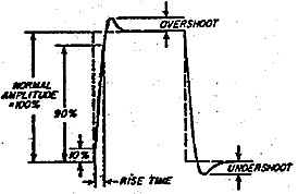 Related to frequency response, there is a specification called "transient response' which is the ability of a device to respond to a stop function. "Rise time" is one measure of transient response and is the time taken for the signal, initiated from a stop function, to rise from 10 percent to 90 percent of its stable maximum value. Another measure is the percentage of the stable maximum value that the signal over-shoots in responding to the step. Figure 3 shows how the square wave, in conjunction with a calibrated CRO, can be used to measure rise time and overshoot.