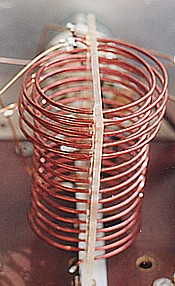 The coil assembly can be mounted using a small L bracket fitted to the perspex sheet at one end of L1. Heavy connecting bus bars between L1 and the tuning capacitors can provide support to the other end of the coil assembly. In the sample shown in the photograph, a base plate was made from a sheet of insulating material and an L bracket fixed the "hot" end of L1 to this. The other end (or earthy end) of the coil assembly was mounted upward and bus bars connected to this end steadied the assembly.