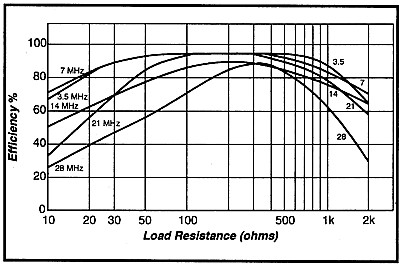 In my opinion, loss of efficiency in the toroidal core coil is of more concern than in the open coil, Suppose we operate at a point on the efficiency curves which shows an efficiency of 60%. This represents about 2 dB loss which would be barely noticeable on the air. However. the 40% of power lost is probably dissipated in the iron powder core and, at high power. this might be sufficient to shatter the core. For this reason I would not be too enthusiastic to operate with high power when efficiency is low.