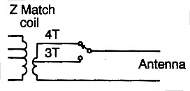 On the Compact Coil or Rononymous Two Coil Z Match, recent tests have showed that this overlap matching condition can be achieved on the 7 MHz and 14 MHz bands. In the initial design, low resistance loads can only be matched on the 3.5 MHz band using output from coil B and hence at 3.5 MHz, this dodge is not available. However, in an article in September 1995 issue of Amateur Radio, we pointed out that if the secondary of coil A was reduced from its seven turns to four turns, then low resistance loads at 3.5 MHz could be operated using coil A output with subsequent improvement in efficiency. By adding this modification, the overlap condition for low resistance loads is also extended to 3.5 MHz and the dodge becomes available on this band.